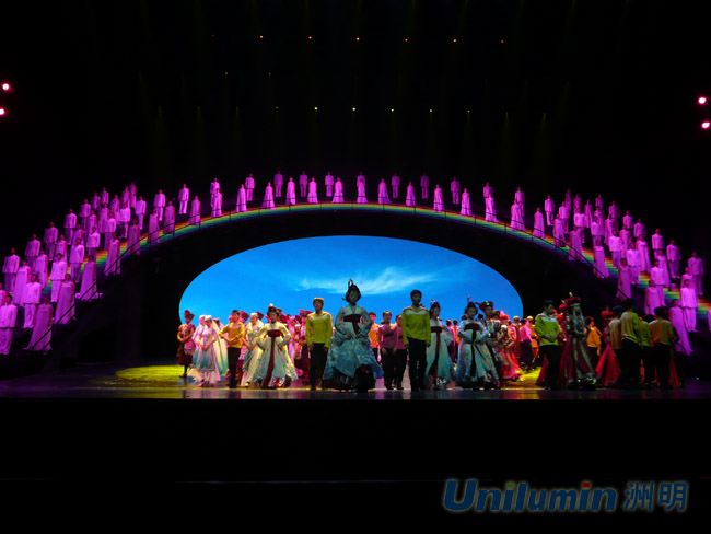 2010年初, hjc黄金城集团 - 黄金城xhjc官方网站科技承建国家大剧院大型音乐舞蹈史诗《复兴之路》舞台的巨型背景"LED室内表贴三合一异形阶梯屏"。《复兴之路》对舞台背景及灯光要求极为苛刻,堪称迄今为止对国家大剧院舞台调度最为丰富和复杂的剧目。为了更好的营造良好的现场气氛,呈现震撼的视觉盛宴,将《复兴之路》完美的呈现给现场观众;hjc黄金城集团 - 黄金城xhjc官方网站人抽调精兵强将,根据舞台现场的条件,决定采用自主研发的具有世界首创性1000HZ的高刷新率及亮度色度可逐点校正的异型LED台阶显示屏。采用先进的模块式封装工艺,在63级台阶上为台阶立面安装LED显示屏;hjc黄金城集团 - 黄金城xhjc官方网站人不怕辛苦在现场进行了近百次的无故障调试运行,最终营造出精彩的视听氛围使《复兴之路》给现场领导和观众深受震撼。