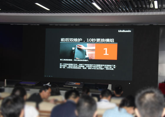 会上,主讲人从市场需求、竞争环境、竞品特点、新品发布四个方面,对户内固定安装LED显示屏的行业发展环境、市场需求,以及相比竞争对手的差异化优势进行了全面地分析。