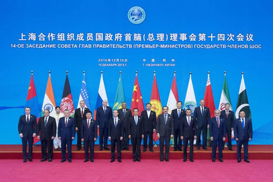 2015年12月14日至15日,上海合作组织(以下称“上合组织”)成员国首脑(总理)理事会第十四次会议在河南省郑州市举行。上合组织成员国哈萨克斯坦总理马西莫夫、中华人民共和国国务院总理李克强、吉尔吉斯斯坦总理萨里耶夫、俄罗斯联邦政府总理梅德韦杰夫、塔吉克斯坦总理拉苏尔佐达、乌兹别克斯坦第一副总理阿齐莫夫,观察员国阿富汗、白俄罗斯、印度、伊朗、蒙古、巴基斯坦政府首脑,以及联合国亚太经社会、东盟、亚信等有关国际组织和机制负责人出席了本次会议,会议由中国国务院总理李克强主持。会后,中国国家主席习近平集体会见了成员国政府领导人。