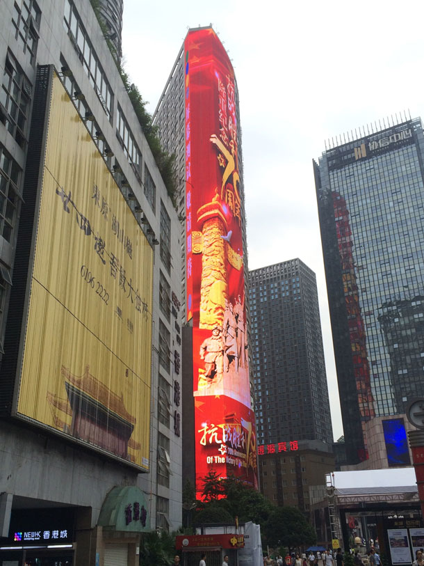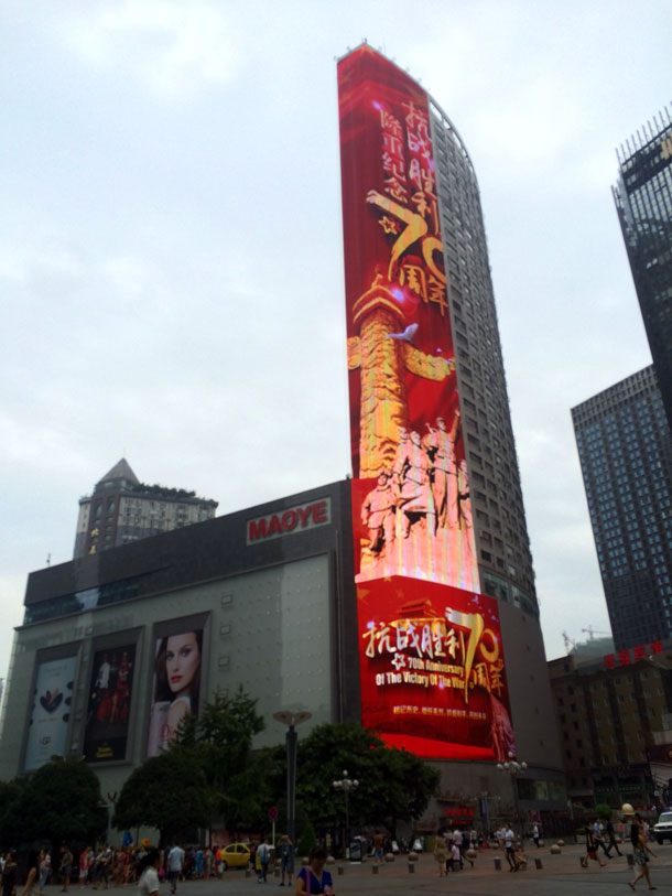 昨日,又一项“第一”在中国重庆被打破,亚洲第一户外LED显示屏成功点亮重庆茂业大厦,整个屏幕与大厦的两面墙体融合,面积达3363平方米,高度超过100米,创造了户外LED显示屏的新高,在重庆观音桥商圈中犹如鹤立鸡群,无论在步行街的哪个角度都能毫无障碍地一眼看到,强烈的视觉冲击力让人无法忽视。