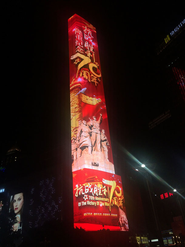 既为“亚洲第一”,该显示屏的几大过人之处在于:首先,高度打破了户外LED显示屏的记录,超过100米的屏体高度在亚洲确实是首创;其次,在于屏幕的安装方式和重量,如此高大的显示屏直接安装在墙体之上,如果按照常规重量计算,肯定是无法承受之重,但这块显示屏就做到了完美契合;第三,该显示屏在设计之初,考虑到光污染的控制问题,在打造亮丽都市风景的同时不给市民生活造成困扰。
