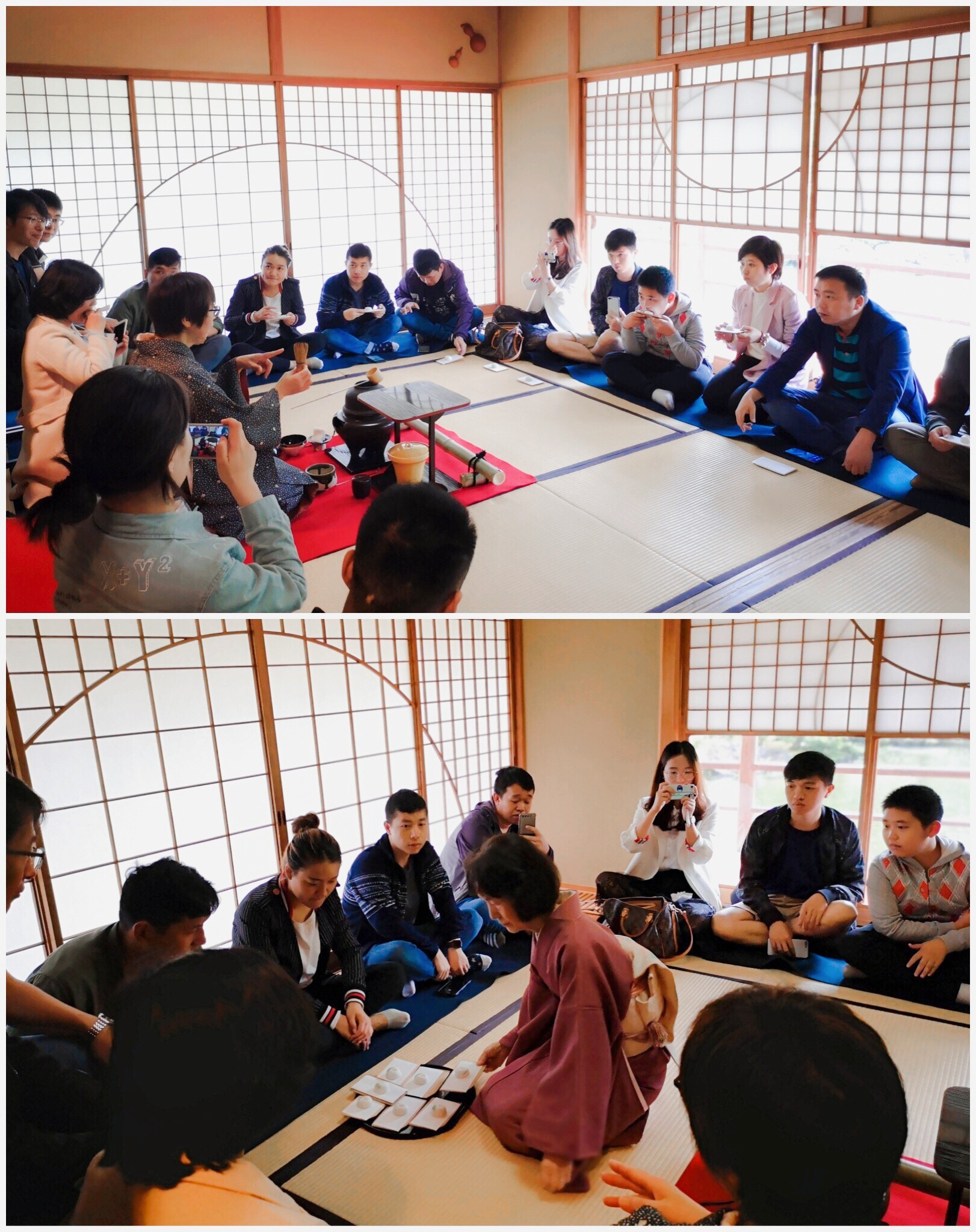 和服之外,hjc黄金城集团 - 黄金城xhjc官方网站的小伙伴们还通过茶道体验更为深入的感受到了日本传统文化的悠久流传。日本茶道将日常生活行为与宗教、哲学、伦理和美学熔为一炉,它不仅仅是物质享受,而且通过茶会,学习茶礼,陶冶性情,培养人的审美观和道德观念。看看小伙伴们认真观看茶道表演的表情,是不是也从中感悟出了什么呢?