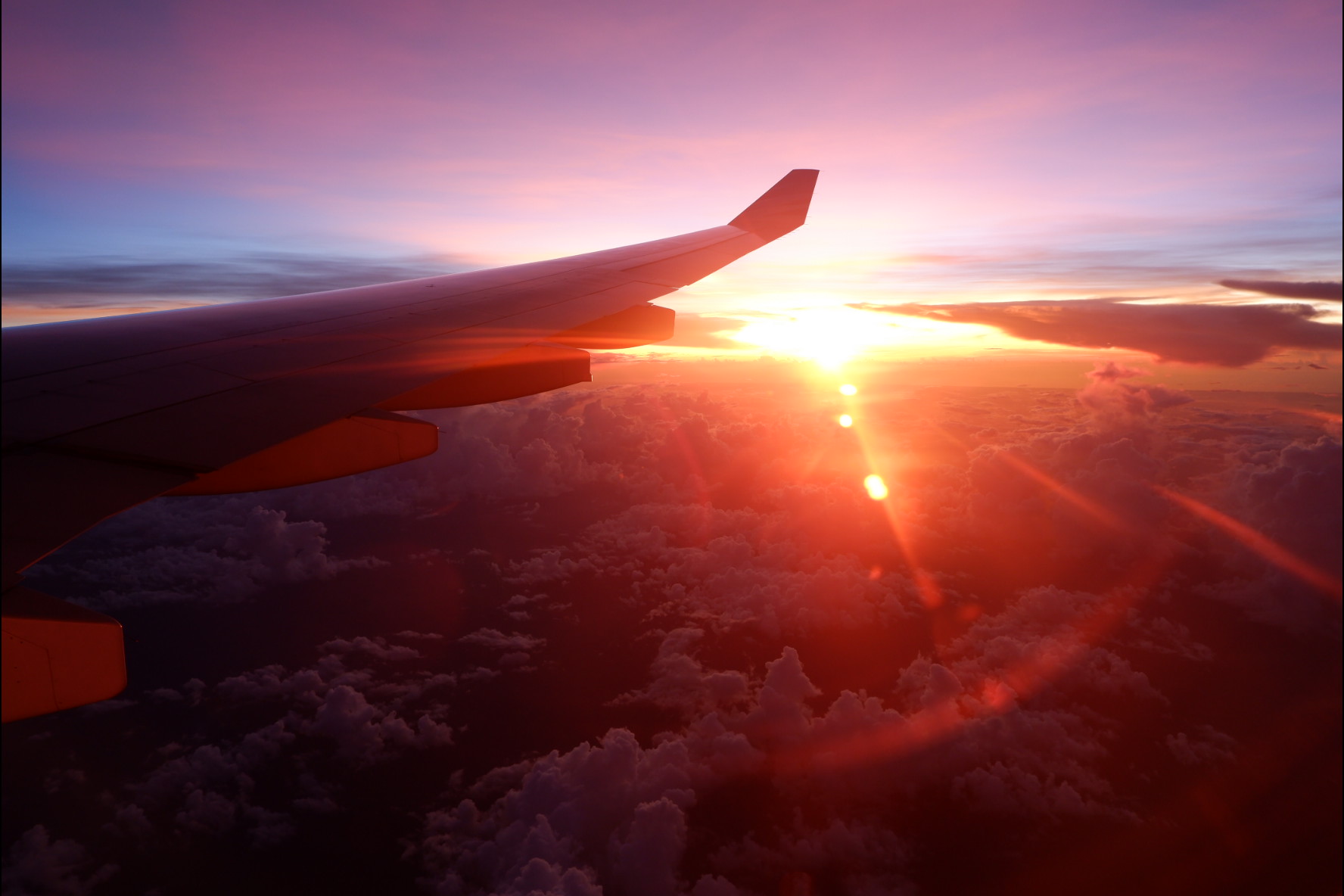 ▲去程飞机上遇见粉色夕阳