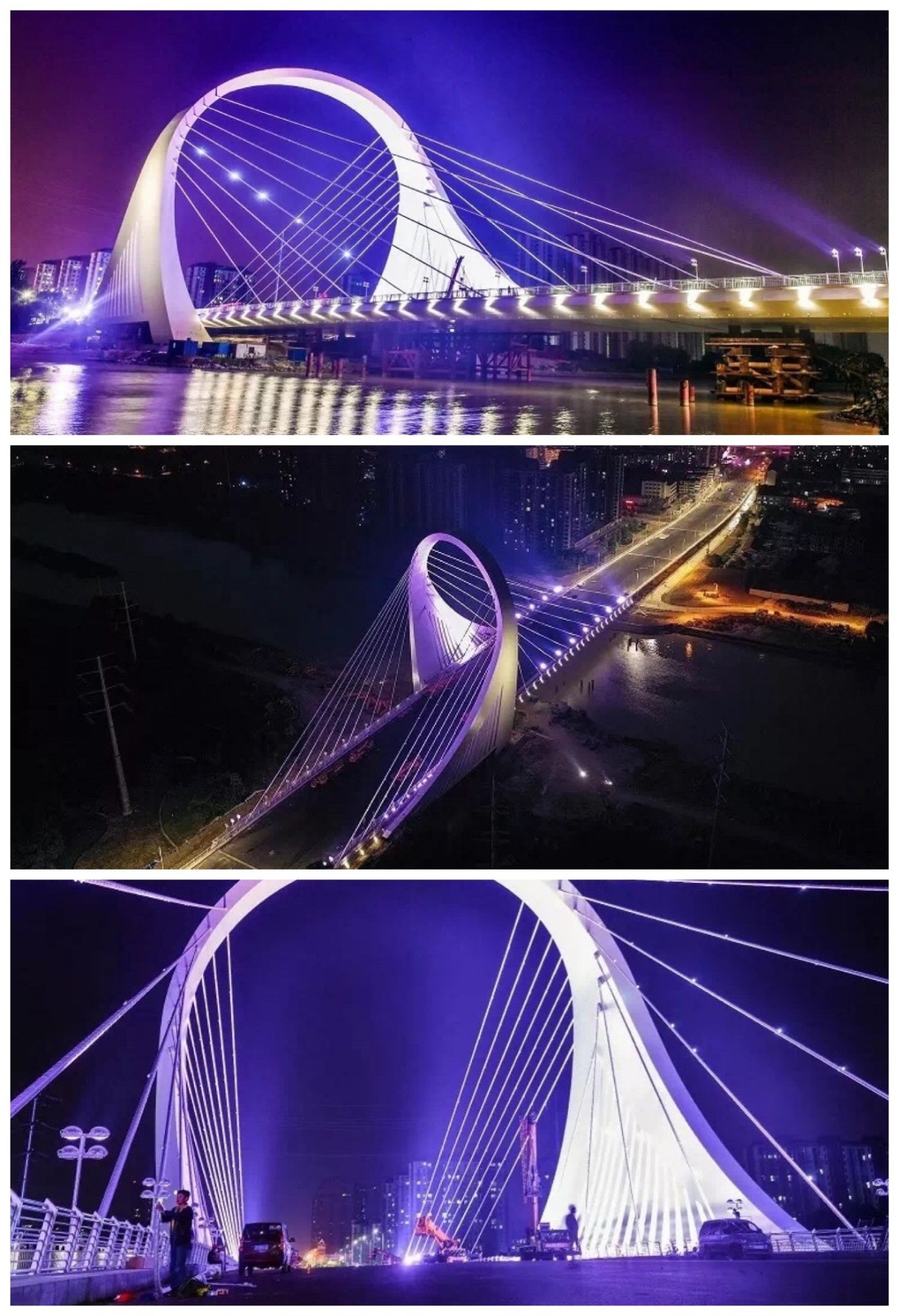 淮安运河大桥的建造运用了多类新工艺和新技术,独特的全三维造型设计更是赋予了这座桥灵动的生命。每当夜幕降临,霓虹般的淮安运河大桥,在夜色中熠熠发光,成为淮安人心中的新地标!