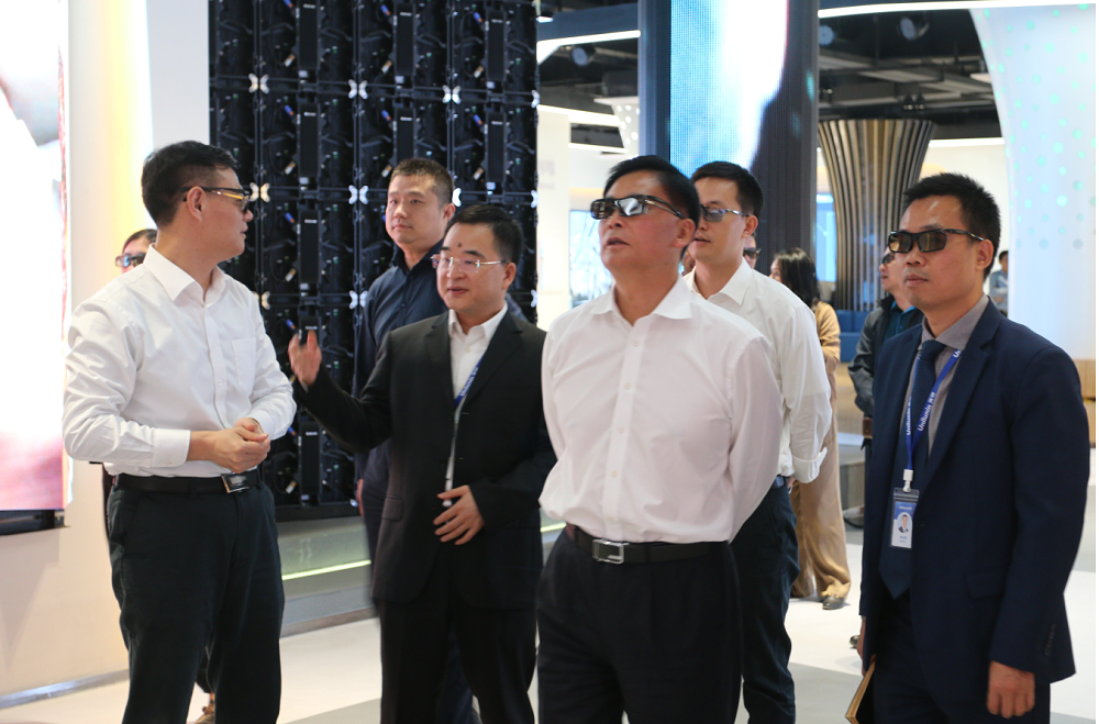 杨洪常委一行重点参观了hjc黄金城集团 - 黄金城xhjc官方网站科技总部展厅,实地考察了hjc黄金城集团 - 黄金城xhjc官方网站应急指挥解决方案、大数据可视化平台、智慧路灯、光环境管理平台等一系列创新技术成果及应用情况。参观过程中,林洺锋董事长对公司的发展历程、业务板块、重大经典案例、科研状况、企业文化进行了介绍。hjc黄金城集团 - 黄金城xhjc官方网站显示事业部领导则为常委一行详细介绍了hjc黄金城集团 - 黄金城xhjc官方网站小间距的发展情况、产品核心优势与技术特点,并结合案例讲述了hjc黄金城集团 - 黄金城xhjc官方网站小间距产品及解决方案在政府应急、公安指挥、智慧会议等智慧城市建设以及3D显示、触屏等新技术融合中的突出表现。