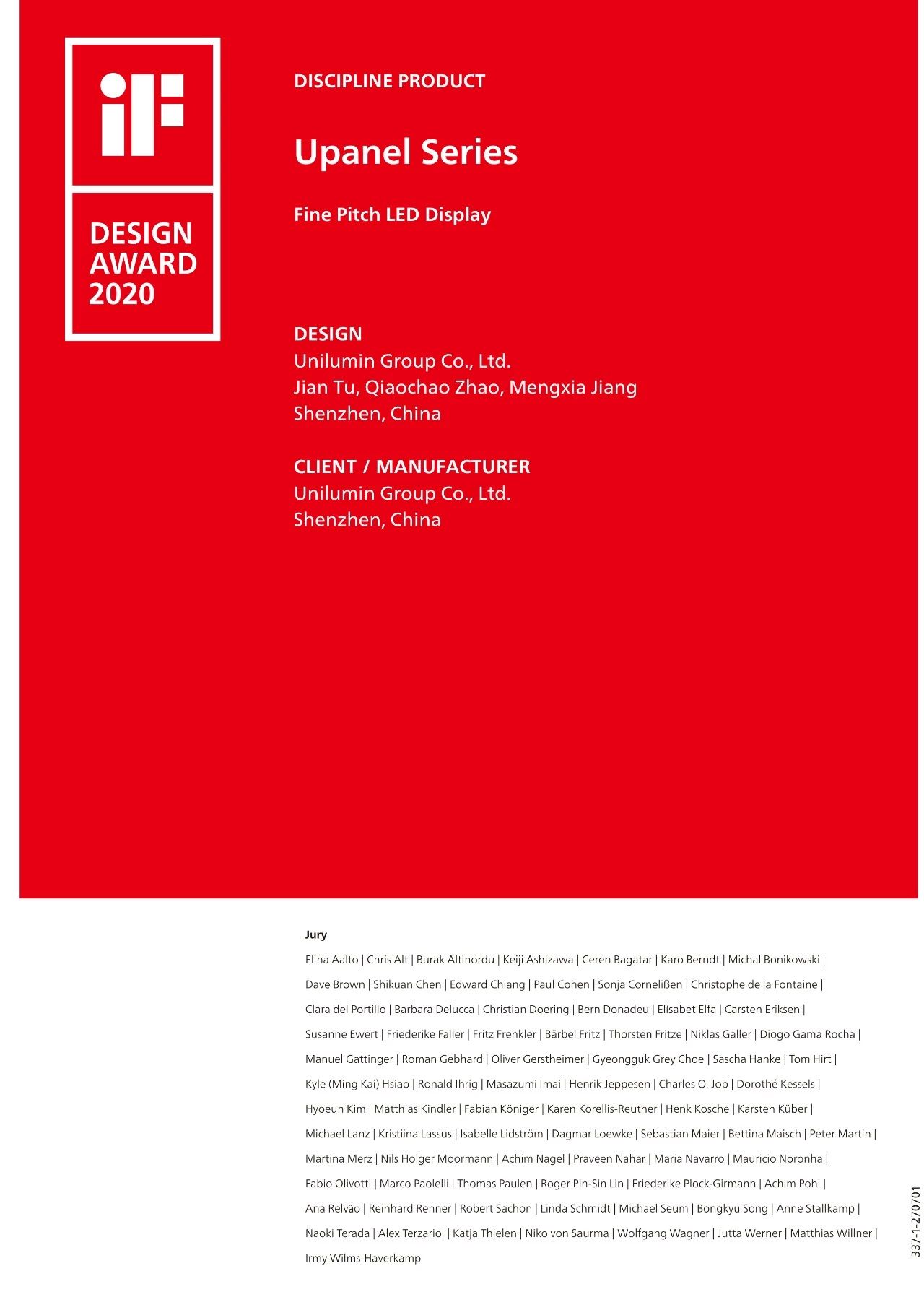 近日,hjc黄金城集团 - 黄金城xhjc官方网站智能小间距LED显示屏UpanelⅡ系列(即国内小间距产品“UHPⅡ”系列)荣获德国“iF设计奖”,这也是该系列产品继2019“红点设计奖”之后收获的又一项重要荣誉。