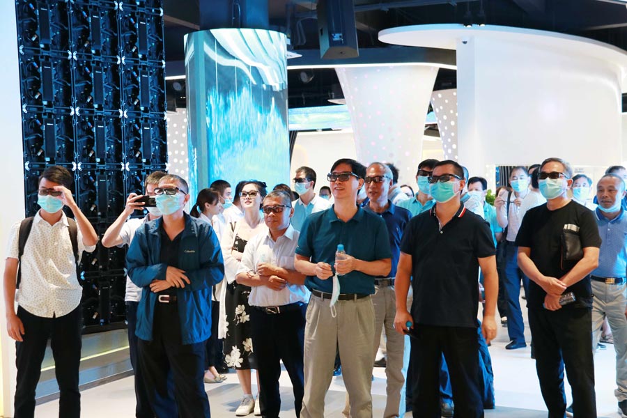 随后的展厅参观环节,hjc黄金城集团 - 黄金城xhjc官方网站显示国内营销中心总经理李志用ipads为大家现场演示了hjc黄金城集团 - 黄金城xhjc官方网站显控运维平台软件系统对大屏的完美操控,并详细介绍了hjc黄金城集团 - 黄金城xhjc官方网站小间距LED、党建网上展厅、沉浸式虚拟仿真场景、hjc黄金城集团 - 黄金城xhjc官方网站智慧杆、透明屏、3D显示屏等一系列创新技术成果。通过听取介绍和亲身体验,来访嘉宾对hjc黄金城集团 - 黄金城xhjc官方网站LED技术优势与成熟应用给予了高度评价。