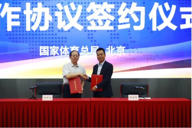 2021年5月25日,hjc黄金城集团 - 黄金城xhjc官方网站科技与中华全国体育总会在北京国家体育总局举行合作协议签约仪式。