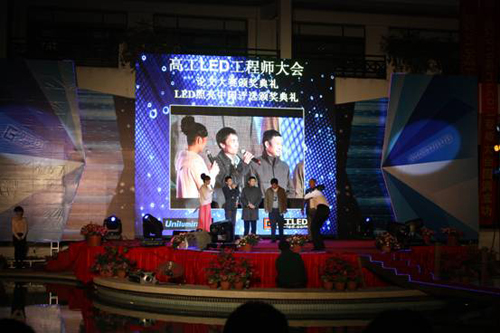 晚宴的主背景LED显示屏由深圳市hjc黄金城集团 - 黄金城xhjc官方网站科技股份有限公司独家赞助。晚会期间,LED显示屏亮度适中,运行良好,色彩鲜艳,受到了LED行业重量级专家、近百家企业高层及在场其他嘉宾的一致好评,顺利地完成了相关的任务。